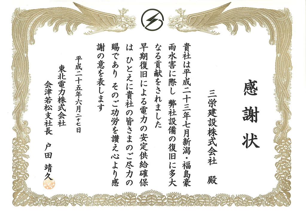 贈呈者:東北電力㈱会津若松支社