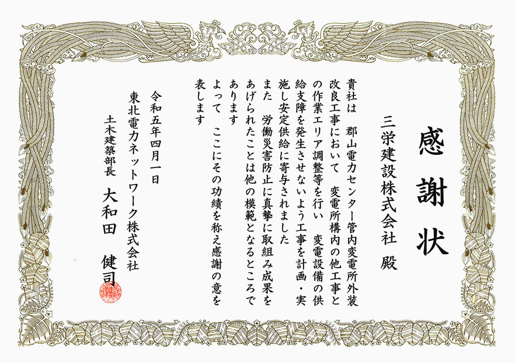 贈呈者:東北電力ネットワーク㈱土木建築部