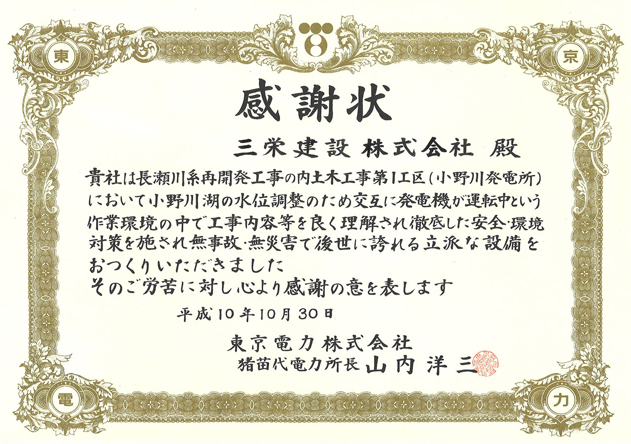 長瀬川系再開発工事のうち土木工事第1工区(小野川発電所)
