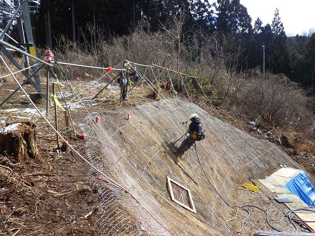 電力土木工事 工事名 幹線保安対策161工事 工期 2022.1.6~2022.3.31 発注者 東北電力NW 請負者 三栄建設株式会社 2022年3月竣工 災害復旧工事 カゴ枠工A=38.0㎡ 受圧板鉄筋挿入工N=54箇所 植生マット工A=132.5㎡ 施工実績一覧へ戻る