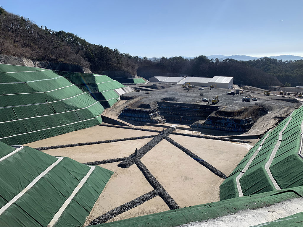 一般土木工事 工事名 郡山市河内埋立処分場第4期埋立地拡張工事 工期 2020.9.18~2023.3.17 発注者 郡山市 請負者 安藤ハザマ・三栄JV 2023年3月竣工 埋立面積A=2.03ha 埋立容量V=516,000㎥ 掘削工V=202,900㎥ 遮水シート工A=32,600㎡ 他 施工実績一覧へ戻る